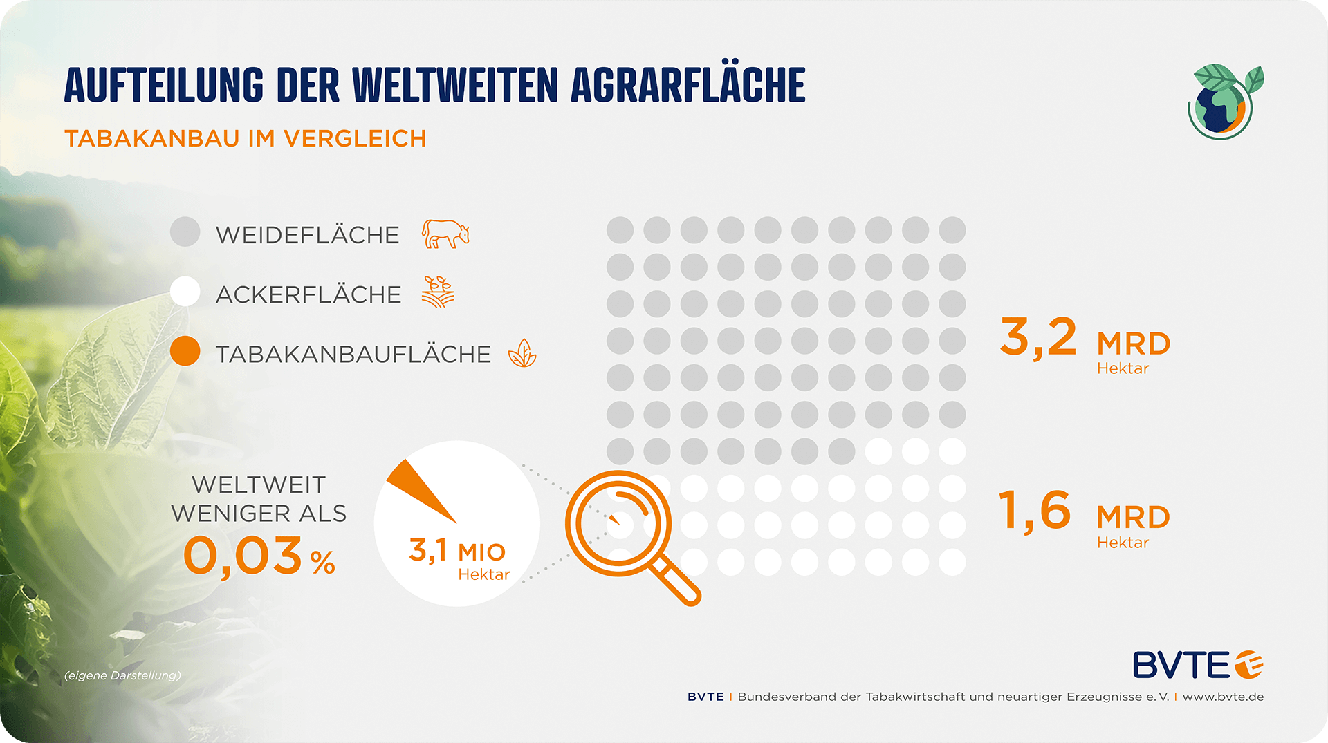 Der Anbau von Tabak ist insgesamt rückläufig, findet auf weniger als einem Prozent der weltweiten Agrarfläche statt - nach den Angaben der Welternährungsorganisation FAO etwa 3,6 Mio. Hektar weltweit.